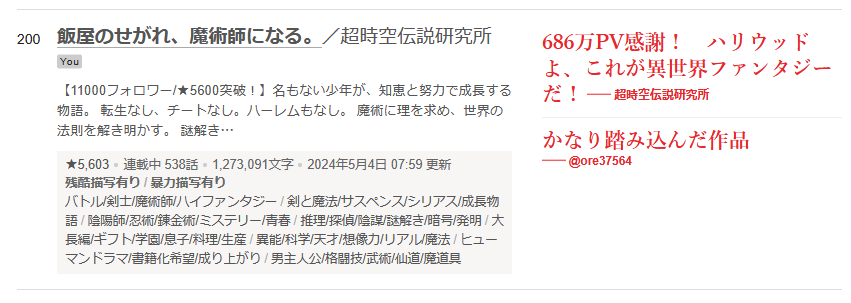 📈異世界ファンタジー週間ランキング186位→200位に後退。