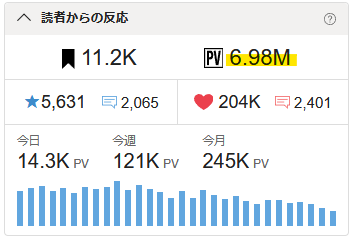 累計698万PV、11200フォロワー、★5600、💗204kの実績を引っさげて、毎週火木土、絶賛公開中!✨