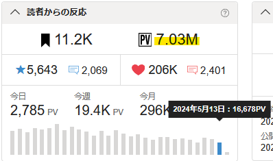 🖋累計PVが7.03Mを超えました。🎉✨ (今日の日付)