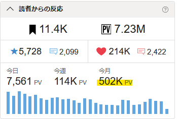 →月間目標は100万PVだったのですが、大幅未達ですね。(汗)