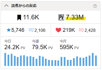 🖋累計PVが7.33Mを超えました。🎉✨