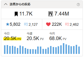 🖋今日のPVが20kを超えました。🎉✨