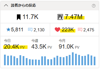累計747万PV、11700フォロワー、★5800、💗223kの実績を引っさげて、毎週火木土、絶賛公開中!✨