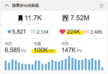 🖋今週のPVが100kを超えました。🎉✨