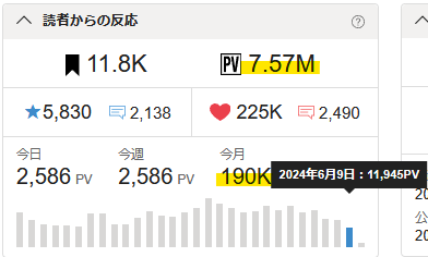 🖋累計PVが7.57Mを超えました。🎉✨ (今日の日付)