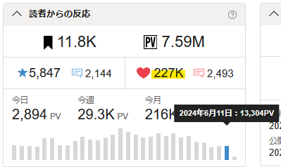 累計759万PV、11800フォロワー、★5800、💗227kの実績を引っさげて、毎週火木土、絶賛公開中!✨