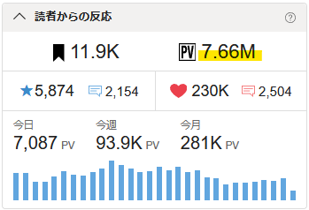🖋累計PVが7.66Mを超えました。🎉✨