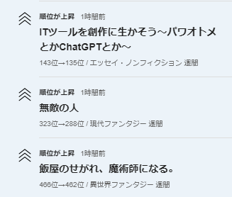 📈現代ファンタジー週間ランキング323位→288位に上昇。🆙🎉✨