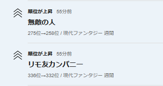 📈現代ファンタジー週間ランキング275位→258位に上昇。🆙🎉✨