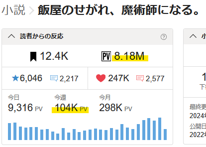 累計818万PV、12400フォロワー、★6000、💗247kの実績を引っさげて、毎週火木土、絶賛公開中!✨