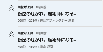 📈異世界ファンタジー週間ランキング260位→253位に上昇。🆙🎉✨