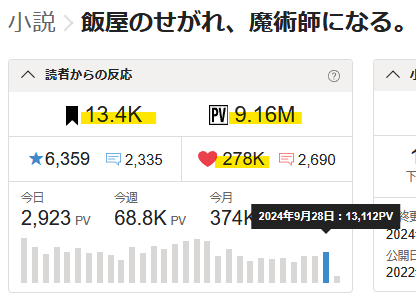 🖋昨日のPVは13112。グラフの右肩がちょこっと上がりました。😃