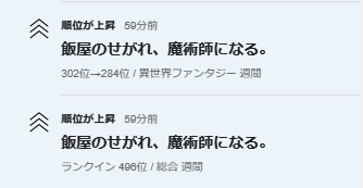 📈異世界累計ランキング416位に上昇。🆙