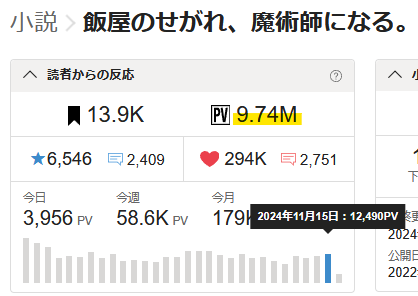 累計974万PV、13900フォロワー、★6500、💗294kの実績を引っさげて、毎週火木土、絶賛公開中!✨
