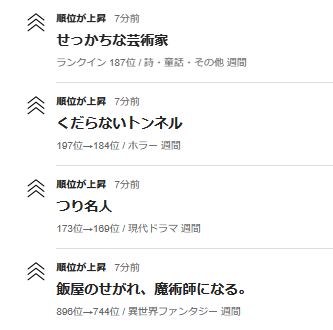 📈総合662位→670位、現代ドラマ・文芸・ホラー206位→210位