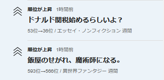 【今朝のランキング】新旧2作をよろしくどうぞ。