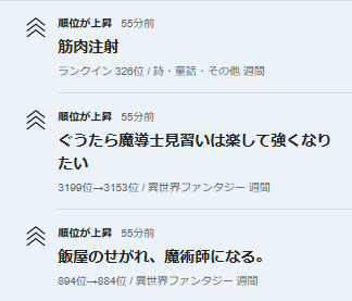 📈異世界ファンタジー週間ランキング3199位→3153位に上昇。🆙🎉✨