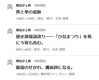 📈歴史・時代・伝奇週間ランキング136位→129位に上昇。🆙🎉✨