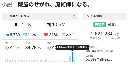 🖊️昨日のPVは17464。さすがの完結ブースト!🎉✨️