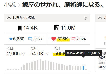 →あと7万で「1111万PV」。⌛ 着々と進め。