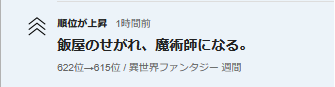 📈異世界ファンタジー週間ランキング622位→615位に上昇。🆙🎉✨