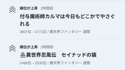 📈異世界ファンタジー週間ランキング2488位→2035位に上昇。🆙🎉✨️