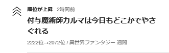 📈異世界ファンタジー週間ランキング2222位→2072位に上昇。🆙🎉✨
