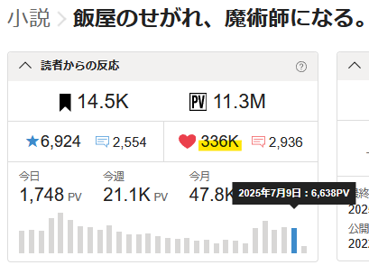 →先週金曜日にコミカライズ版が更新されてから、高めのPVで推移していますね。