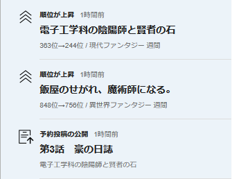 📈現代ファンタジー週間ランキング363位→244位に上昇。🆙🎉✨