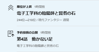 📈現代ファンタジー週間ランキング244位→218位に上昇。🆙🎉✨