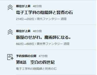 📈現代ファンタジー週間ランキング214位→202位に上昇。🆙🎉✨
