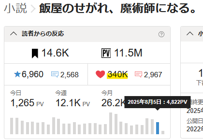 「なろう」界では昨日のPV=13836。依然、1万PV/日ペースを超えています。