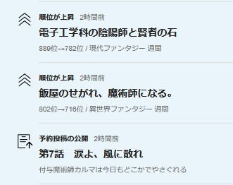 📈現代ファンタジー週間ランキング889位→782位に上昇。🆙🎉✨