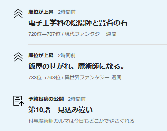 📈現代ファンタジー週間ランキング720位→707位に上昇。🆙🎉✨