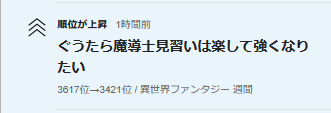 📈異世界ファンタジー週間ランキング3617位→3421位に上昇。🆙🎉✨
