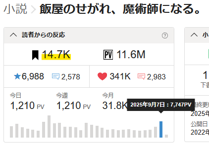 「なろう」の方では24051PVまで伸びました。🎉✨