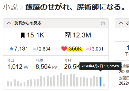 🖊昨日のPVは3725。とっくに完結済みの作品としては頑張っております。