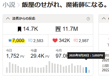 →★は減ることもあるので瞬間風速ですが、節目到達!