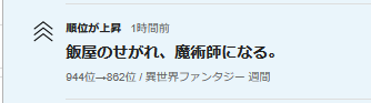 📈異世界ファンタジー週間ランキング944位→862位に上昇。🆙🎉✨