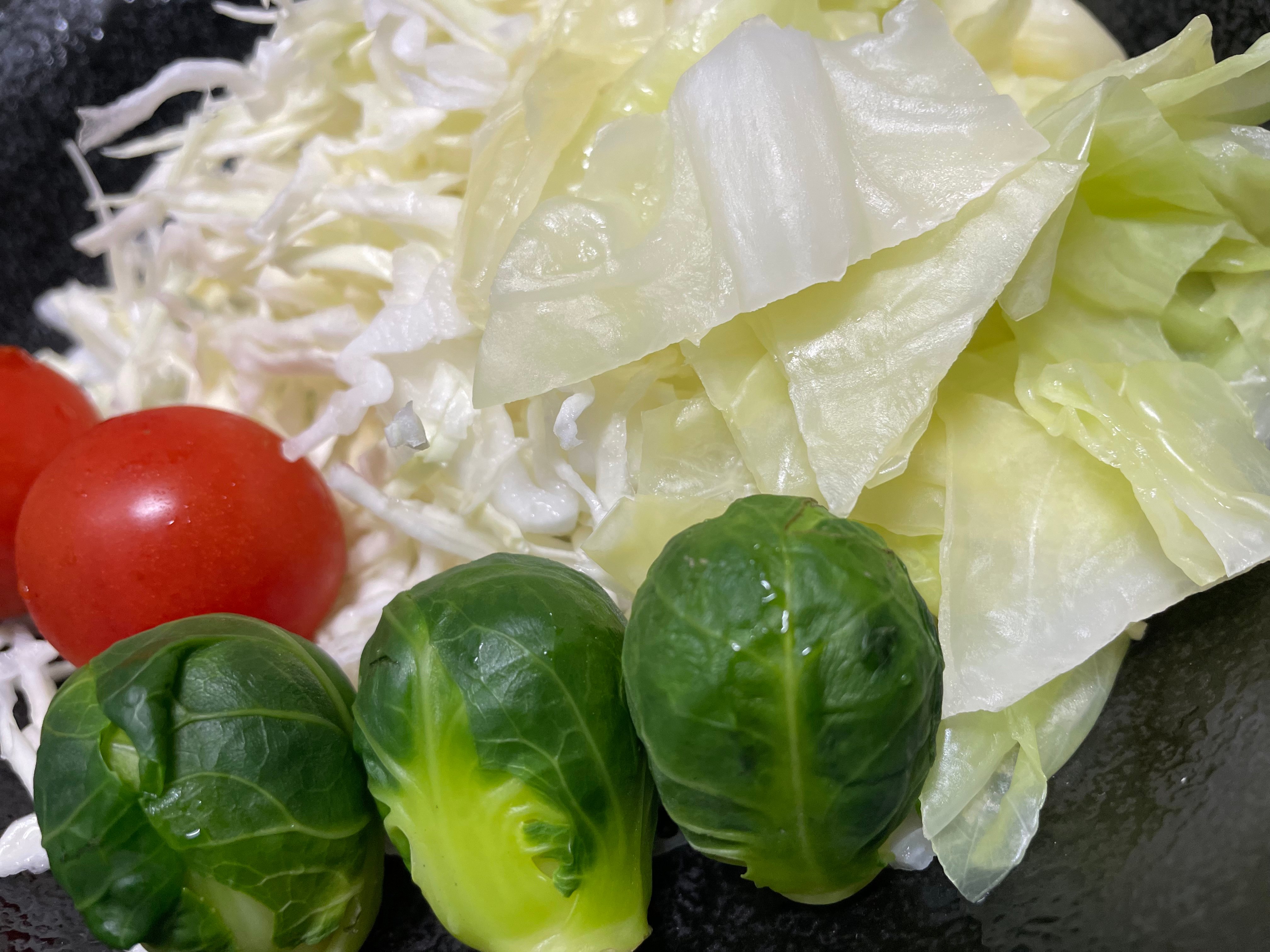 スーパー行ったら芽キャベツ半額。で、これよ。