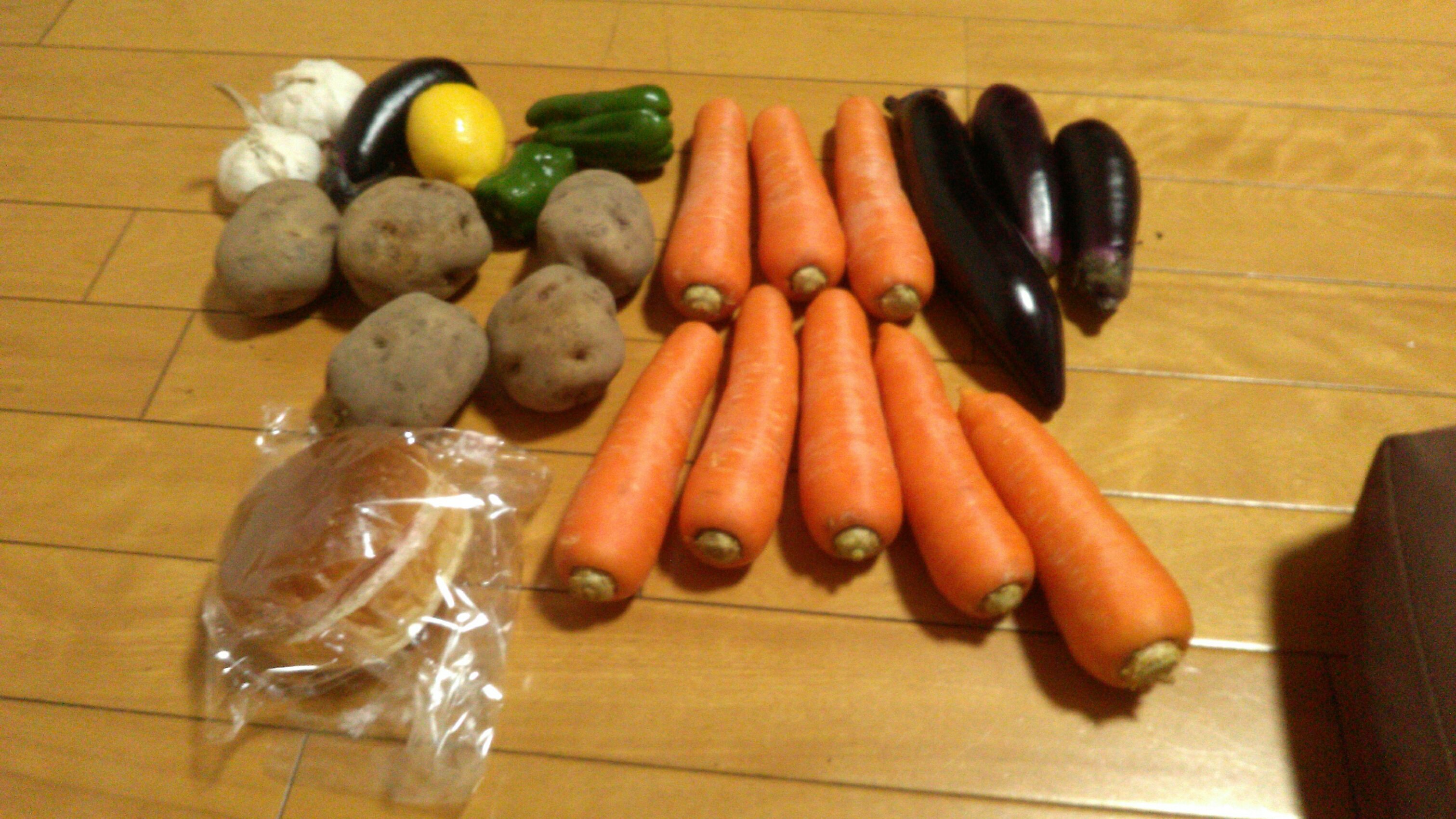 日記に載せた詰め放題の野菜と苺クリームサンドの写真です。