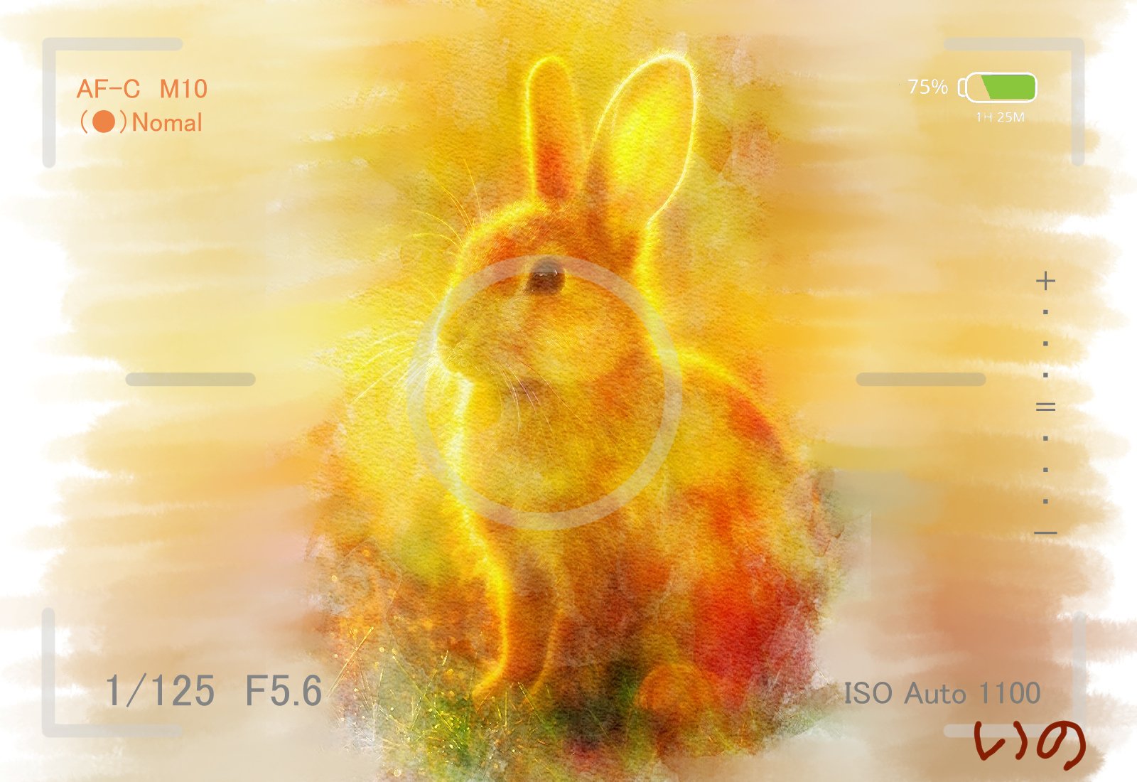 で、適当にファインダーの雰囲気を出す、線とか文字とかを入れました。カメラのこと詳しくないので、ファインダーに関して、ツッコミ入れられてもわかりません(笑)