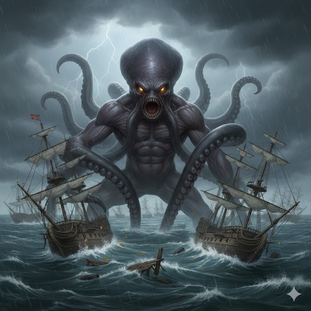 体長100メートル超、触手一本で戦艦を圧し潰す伝説の怪物「クラーケン」。 しかし、その巨大な瞳の奥に宿るのは、かつて「アオト」という名を持った青年の明晰な知性と、消えない苦悩でした。