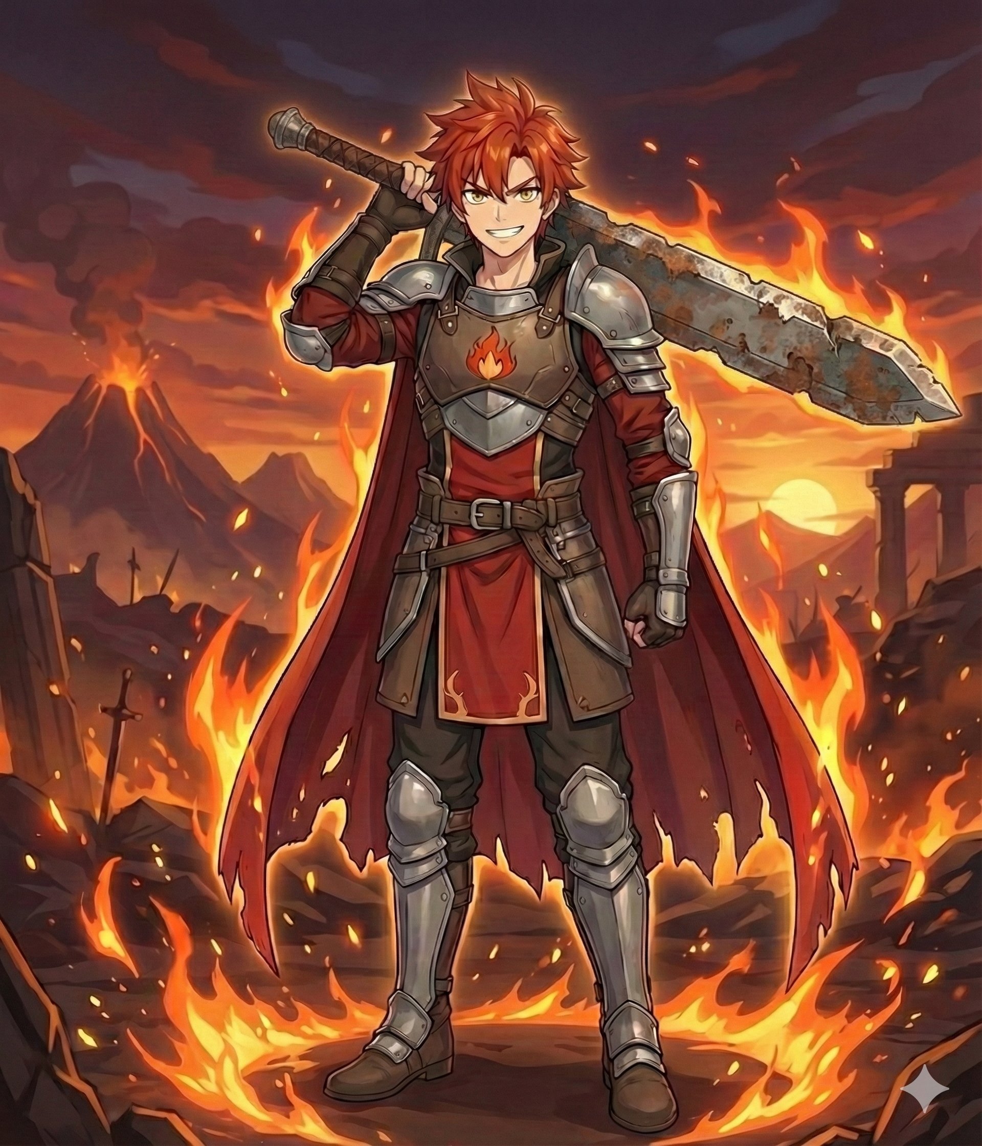 燃えるような赤髪と、巨大な剣を背負った不敵な男。 彼がなぜ「名前」を失い、この消失しゆく世界で戦い続けているのか……。 紺色のコトハと、赤色のクサビ。 まったく正反対な二人の絆が、この物語の核になります。