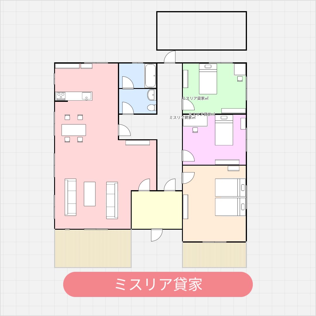 簡易アプリで、ミスリアさんが借りた貸家の間取りを作ってみました!文字だけよりはイメージし易いかと思います。