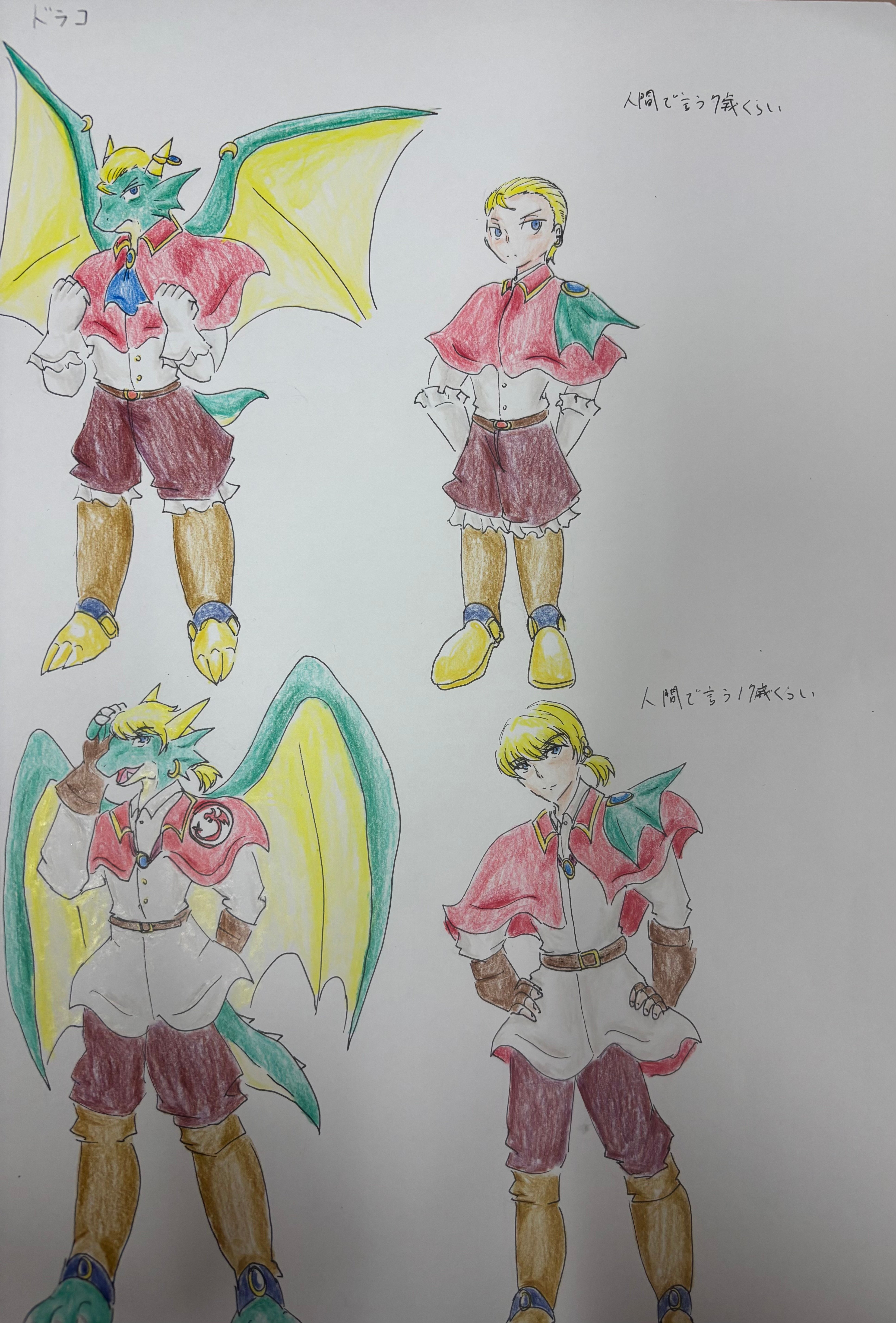 次は、ブルームのライバル、ドラゴンのドラコです。当初はもっと性格の悪いキャラにしようとしましたが、気づいたら正々堂々とした武人キャラになっていました。