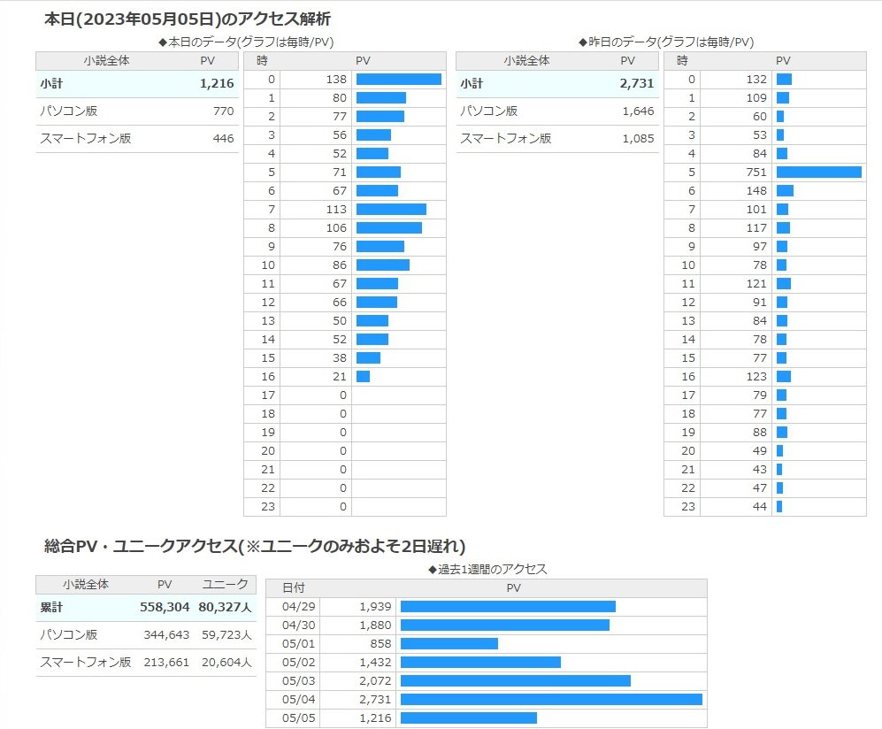 なろうも、PVカウントをユニークIPで1話1回だけにしてもらえれば、もう少し信用できるのですが(汗