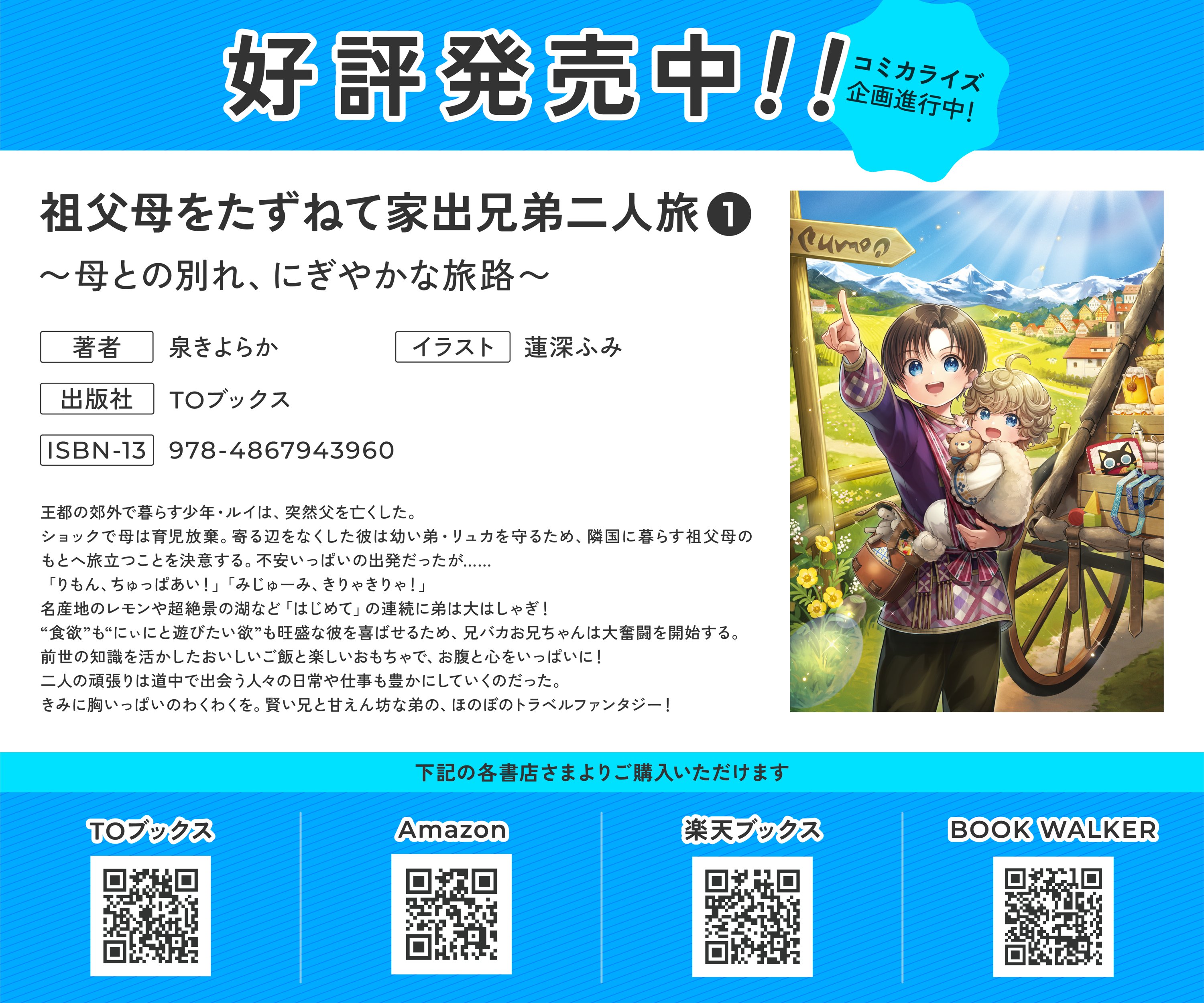 【12/14発売】祖父母をたずねて家出兄弟二人旅~母との別れ、にぎやかな旅路~の第1巻の感想を書き込んでいただける近況ノートを作りました。