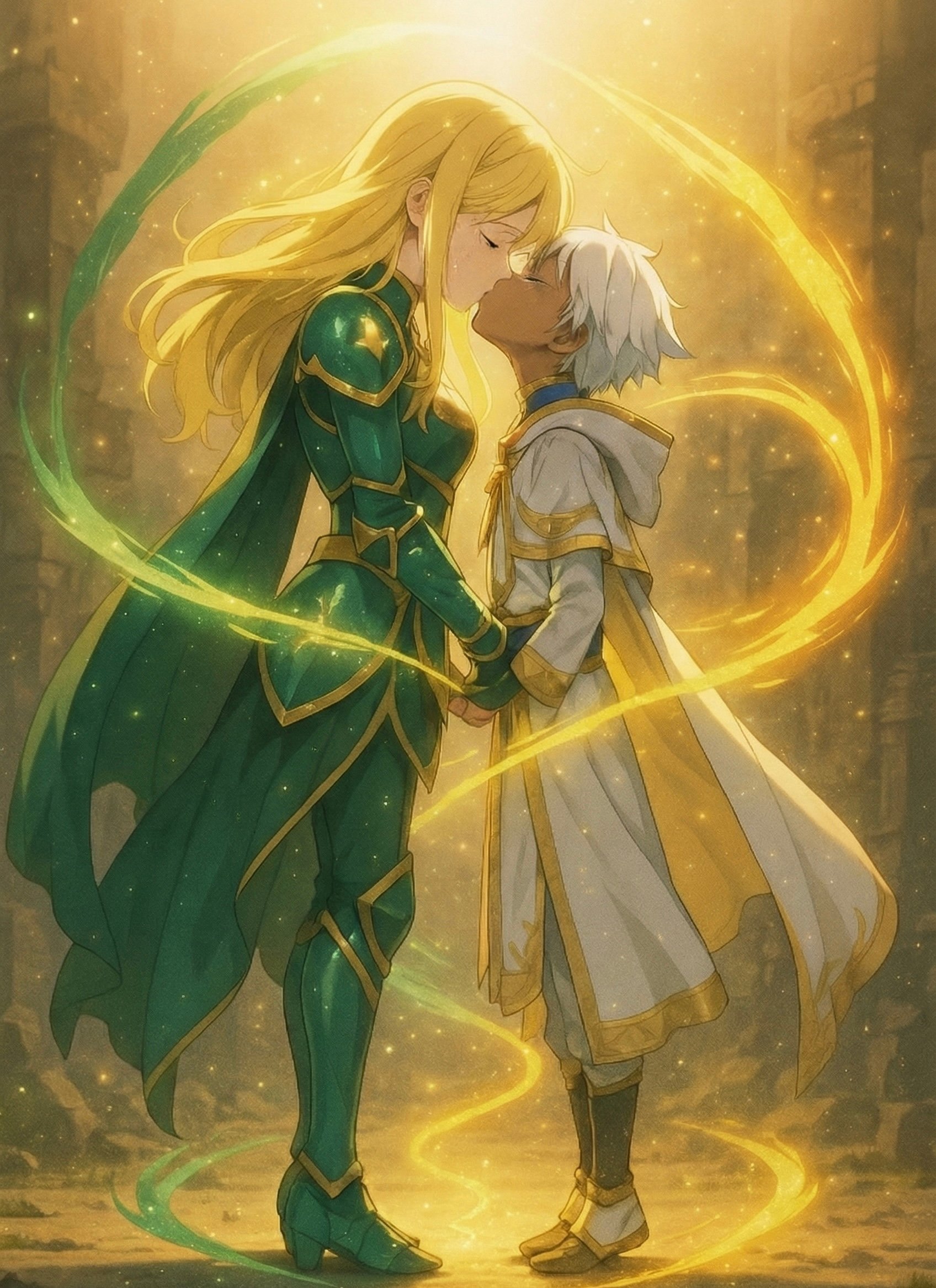 体格差、特にトキが背伸びしているところを描くのに相当プロンプトひねくりまわしました。