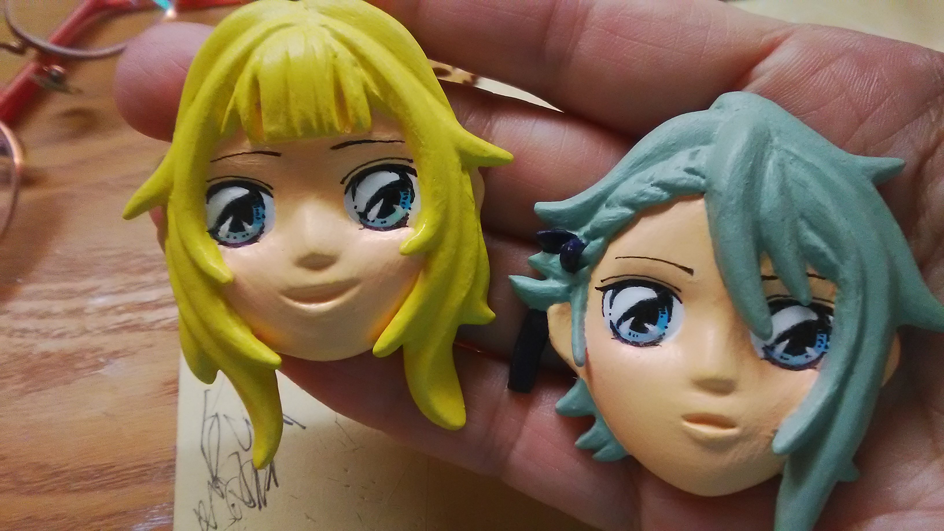《アクリル絵の具》で着色。ツヤ消し《ニス》(スプレータイプ)+一部《レジン》で仕上げ。